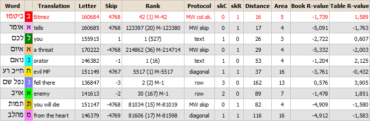 The masterword of the matrix is : Bitmez The slavewords of the matrix are : tells, you, a threat, orator, evil MP, fell there, enemy, you will die, from the heart The odds can be estimated to be less than 1:10,000 (based on 100,000 generated control texts) The table also includes the expression : "anger of Hashem" (not mentionned above). Context: Representing the Felicity (Saadet) Party, Bitmez delivered his speech during a debate on Turkey’s 2024 Foreign Affairs budget. He fiercely criticized the AKP government for continuing trade and normal relations with Israel, while publicly condemning it during the Gaza war. Holding a banner reading “Murderer Israel; collaborator AKP,” he declared: “You are Israel’s accomplices” and accused the ruling party of contributing to “every bomb Israel drops on Gaza.” He insisted: “We can perhaps hide from our conscience, but not from history,” warning that Israel would suffer divine retribution. His final words were: “You will not escape the wrath of Allah. I salute you all.” Immediately after, he collapsed at the lectern. Bitmez suffered a heart attack (Ankara City Hospital). He passed away on December 14, 2023, two days after collapsing and just one day before his 54th birthday. His death also led to the loss of the parliamentary group of the alliance he was part of, as it no longer met the required minimum number of deputies. Wikipedia: Hasan Bitmez