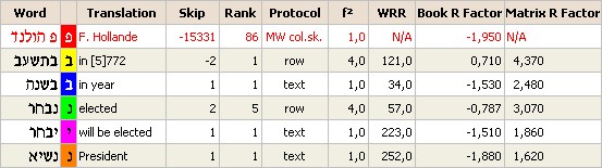 The masterword of the matrix is : F. Hollande The slavewords of the matrix are : President, elected, in year, in [5]772/2012, will be elected Wikipedia: Hollande