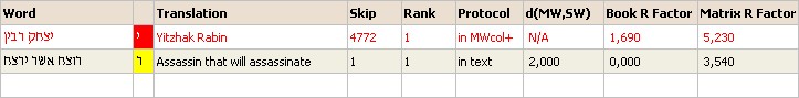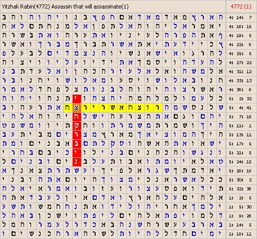 The masterword of the matrix is : Yitzhak Rabin The slavewords of the matrix are : Assassin that will assassinate Wikipedia: Yitzhak Rabin