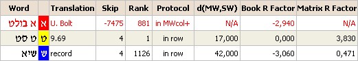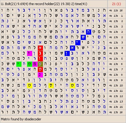 The skip of the matrix is 21. The masterword of the matrix is : U. Bolt. The slavewords of the matrix are : 9.69, the record holder, 19.30, time.