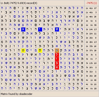 The skip of the matrix is -7475. The masterword of the matrix is : U. Bolt. The slavewords of the matrix are : 9.69, record.