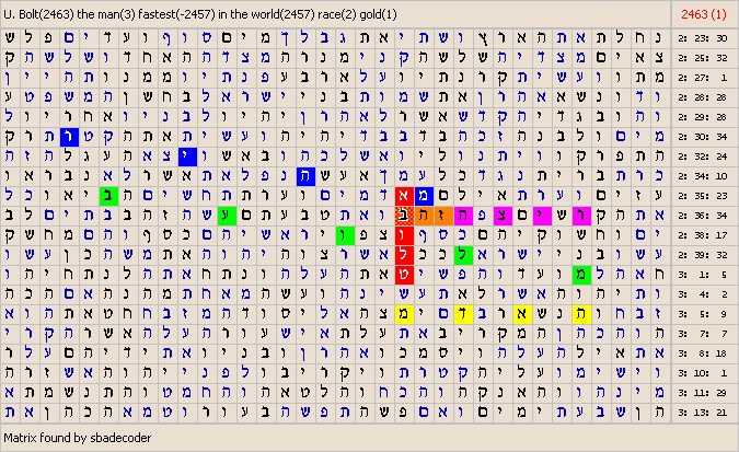 ![]() The masterword of the matrix is : U. Bolt. The slavewords of the matrix are : the man, fastest, in the world, race, gold. Wikipedia : Bolt